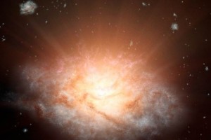La NASA explicó que la galaxia brillante, conocida como WISE J224607.57-052635.0, puede tener un agujero negro gigante en su vientre, absorbiendo en sí el gas.