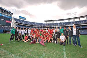 RELAX. Al término del entrenamiento de la Selección Nacional, todo el grupo se tomó una foto con los artistas Jesse y Joy, quienes amenizarán el medio tiempo . (Foto: ETZEL ESPINOSAIMAGO7 )