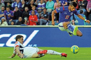 SALTO. El cruzazulino Joao Rojas eludió con habilidad la marcación rayada, aunque la proyección ofensiva local sólo consumó una llegada para definir el encuentro. (Foto: CARLOS MEJÍA / EL UNIVERSAL )