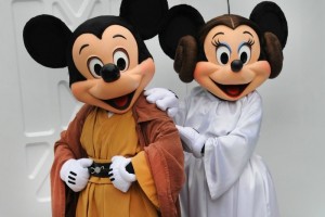 Como es usual están Mickey, Minnie y otros personajes tanto de Star Wars como de Disney, todos con atuendos inspirados en ese tema.