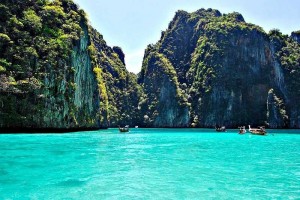 Escenario de la película La Playa. El archipiélago está compuesto por seis islas bañadas por un mar de color turquesa, siendo Maya Bay