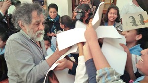 MAESTRO. Francisco Toledo es asediado por escolares que le piden su firma en libretas que él mismo ilustró. (Foto: QUADRATÍN )
