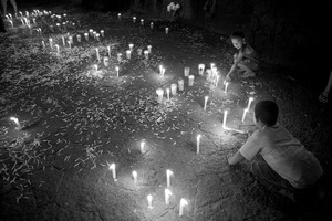 HOMENAJE. Ayer por la noche fue colocada una ofrenda con velas y flores en memoria de las personas que perdieron la vida durante el enfrentamiento del pasado martes en Apatzingán. (Foto: REBECCA BLACKWELL / AP )