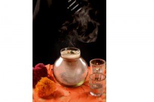 En la esfera colocar la tortilla bien quemada y tapar con la copa para generar combustión.