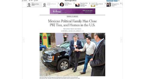 INVESTIGACIÓN. En el artículo titulado "Una familia mexicana conectada al PRI y con propiedades en EU", el diario indica que los Murat han adquirido durante décadas inmuebles en NY, Texas, Florida y Michigan, los cuales no han sido objeto de investigación en México ni en EU. (Foto: TOMADA DEL PORTAL DE )
