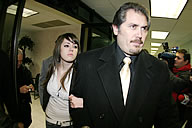 Acompañada de su abogado Roberto Flores, la madre de los dos niños asesinado escuchó las preguntas que le realizó el Ministerio Público adscrito al juzgado.