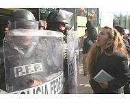Un grupo de trabajadores de Conaculta se enfrentaron con elementos de la Policía Federal Preventiva en avenida Paseo de la Reforma, a la altura de la calle Río Támesis.