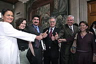 Dulce María Sauri, Denise Dresser, Javier Corral, Manuel Bartlet, Raymundo Cárdenas Y Noemi Guzmán celebran el fallo de la Corte. (Foto: Lucía Godínez/EL UNIVERSAL )