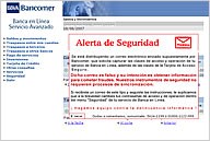 Al ingresar al portal del banco como usuario de banca en línea aparece un banner en letras rojas que destaca "Hagamos equipo contra la delincuencia informática".