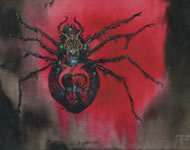 La obra, de tono sombrío, casi siniestro, retrata a una enorme araña negra sobre un fondo rojo, y tiene una dedicatoria que reza: "A María con todo mi cariño".