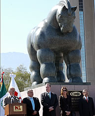 "Me siento muy complacido de ver mi escultura monumental en bronce El Caballo finalmente en casa (...) Es bueno que esta pieza quede aquí para siempre adornando esta hermosa ciudad de Monterrey", agregó en el acto Botero, a quien acompañó el gobernador Natividad González Parás.