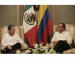 El presidente de Colombia, Álvaro Uribe, durante el diálogo que sostuvo con su homólogo Méxicano, Felipe Calderón.. (Foto: AP )