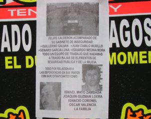 Señala uno de los panfletos que todas esas muertes de militares y de corporaciones policiales son por relacionar sus dependencias en sus tratos con narcotraficantes como: Ismael Mayo Zambada, Joaquín Guzmán Loera “El Chapo” líder del cartel de Sinaloa, Ignacio Coronel, Oscar Valencia, y La Familia.