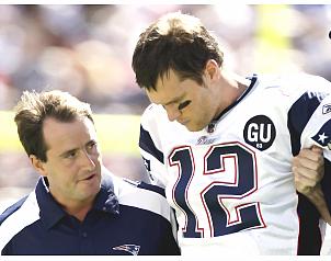 El quaterback de los Patriotas de Nueva Inglaterra, Tom Brady, sufrió una distensión de los ligamentos cruzaos en la rodilla izquierda después de que el defensivo de los Jefes de Kansas City, Bernard Pollard, le cayera encima tras un pase largo a Randy Moss.