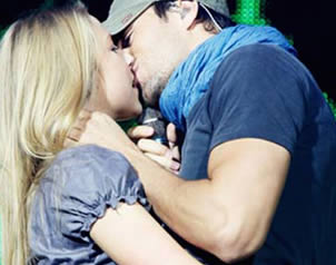 Besa Enrique Iglesias a fan sobre el escenario