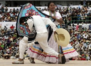 La Guelaguetza se institucionaliza en Oaxaca; grupos representativos de las siete regiones del estado comparten danzas y cantos propios, vistiendo indumentaria de gala de sus respectivos pueblos.