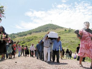 EN SU PUEBLO. Bonfilio fue sepultado en Tlatzala. El Ejército dice que no violó sus derechos humanos, porque su muerte fue consecuencia de un acto de negligencia . (Foto: ESPECIAL )